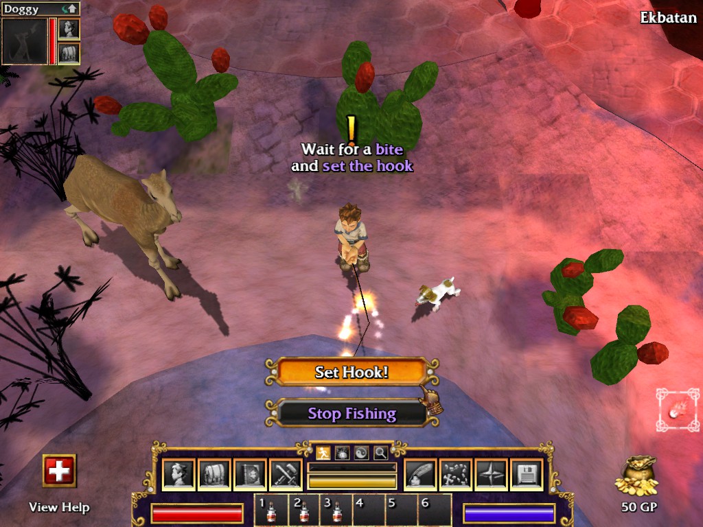 There are two locations in ekbatan to fish, and some levels of the dungeons can have lakes in them where the player can fish.