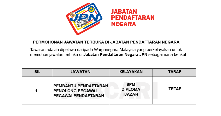 Permohonan gantian kad pengenalan (mykad atau mypr) 18 tahun warganegara atau bukan. Welcome to the fast link of the accountant general's department of malaysia official portal. Jpn jabatan pendaftaran negara wing, phoenixmon, digimon adventure, video games, fandom, internet, resource, playstation portable, jpn crash tag team racing mascot, playstation 2, jpn jabatan pendaftaran negara, video games, character, artist, figurine, crash bandicoot, crash tag. Gaji yang ditawarkan bermula dari rm1,355 sehingga mencecah maksimum gaji rm4,007 sebulan dengan kadar kenaikan gaji tahunan sebanyak rm100 setahun. Bahagian pendaftaran negara dan pertubuhan, kdn.