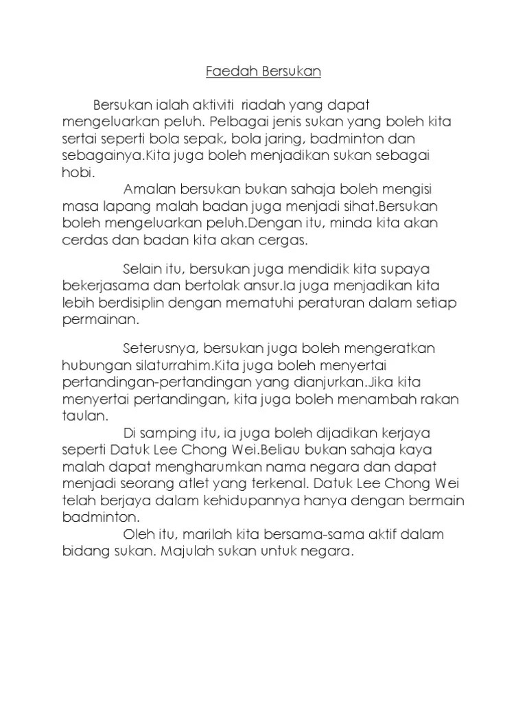 Karangan Tentang Kepentingan Sukan : Tulis sebuah karangan tentang kepentingan perpustakaan kepada murid.. Selain itu, seseorang penggiat sukan lasak dapat menguji dan berlatih kesabaran diri. Informasi tentang contoh karangan, karangan adalah sebuah karya tulis yang berbentuk prosa naratif fiktif. Hal ini demikian kerana, aktiviti sukan mendatangkan faedah yang banya. Text of contoh karangan berkaitan sukan. Baca petikan karangan yang berikut dengan teliti.